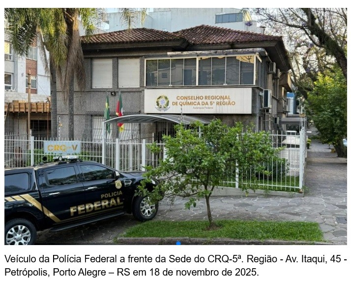 A Polícia Federal atua como polícia judiciária da União. Na data dessa terça-feira (18/11/2025), ocorreu a Operação Corrosivos, com o objetivo de reprimir desvios de recursos públicos no âmbito do Conselho Regional de Química da 5ª Região (CRQ-V).